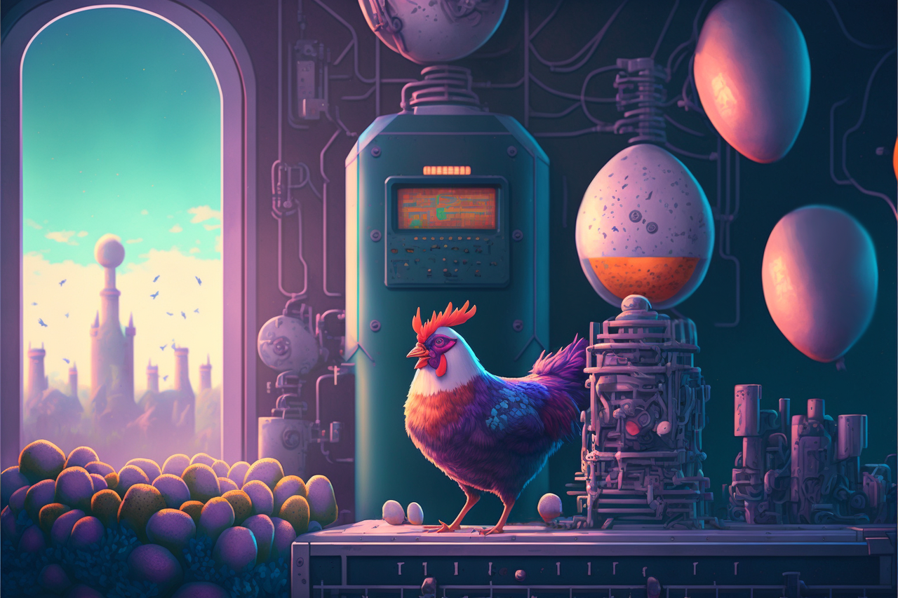 乡间传统淳朴的养鸡场也在春天引进了现代化的元宇宙科技设备,养鸡场主们用科技配合饲养,使得每一种鸡蛋都能更加顺利的孵化。这些来自元宇宙的神秘鸡蛋,通过精心的培育便能在此孵化出不同种类的小鸡,叽叽喳喳的养鸡场中正呈现着一派生机。