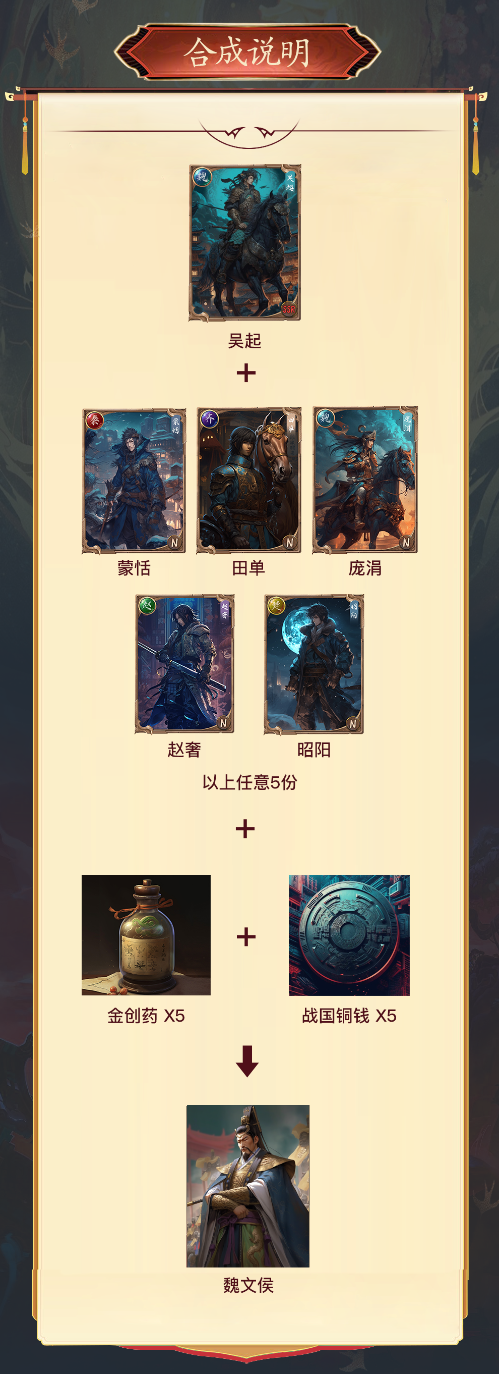 即可合成1份「魏文侯」藏品,限量合成200份。