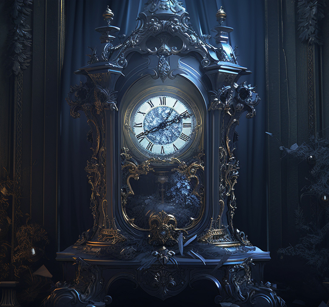 午夜时钟,在深夜中发出深刻而悠扬的钟声,仿佛在诉说着一段神秘而沉重的历史。它的造型古老而又典雅,钟面是斑驳的青铜色,被时间雕刻着痕迹。钟的表面刻有奇怪古老的符号,这些古老的符号似乎有着某种隐藏的玄机,总让人有种莫名的神秘感。而一旦它响起,就代表着某事将会发生……