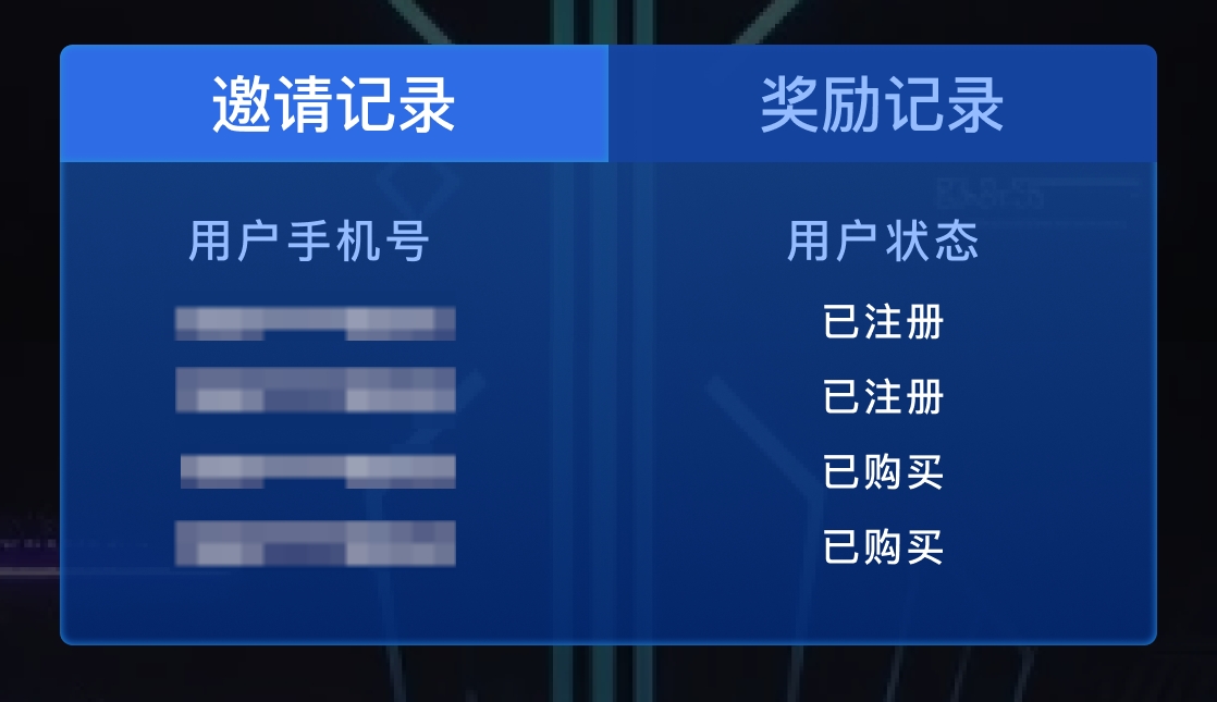 - "已注册"状态表示被邀请者已完成注册尚未购买「营养肉块」;