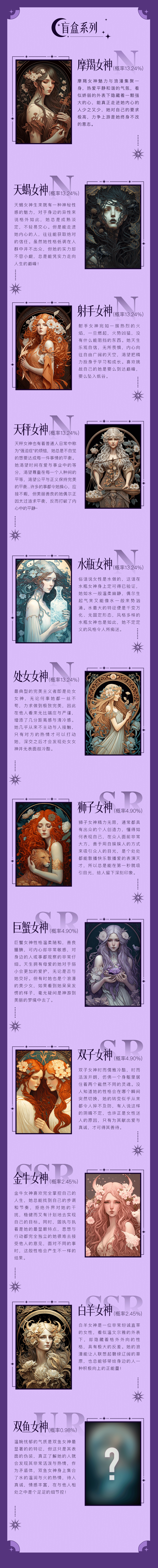 3.8女神节已经到来!每月一次的盲盒发售也随着节日的到来而降临,本次全新「星座女神」盲盒系列将继续采用上一次盲盒系列发售的策略,策略中不仅加入了热门选品,对于合成新品也给予了更多盲盒赋能机会,稀有度且高价格稳定的藏品也会给予长期盲盒赋能含优先级,特此重申(也可点此查看):