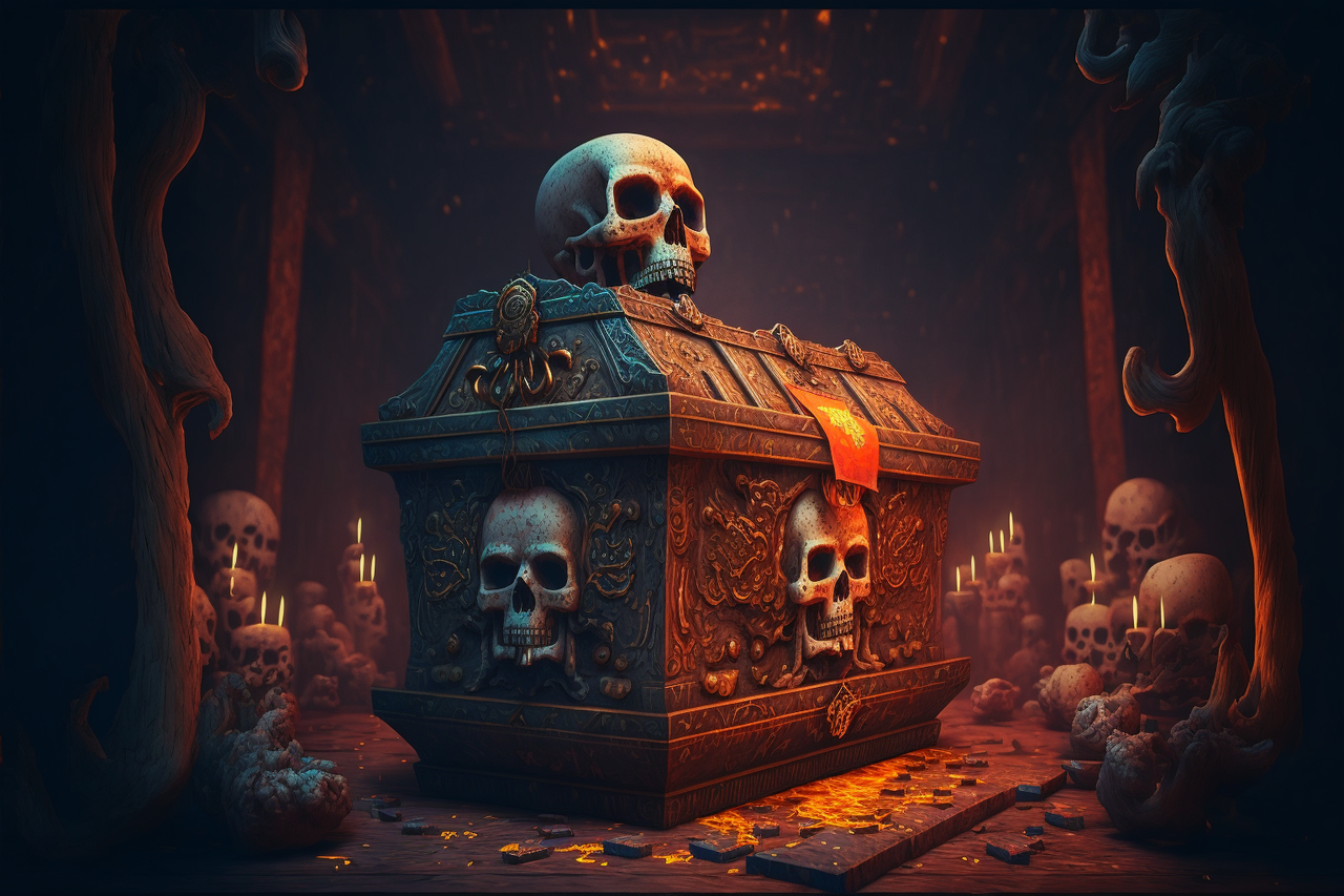无数烛火在六层妖塔处散发出暖色的微光,然而这也丝毫无法掩盖此处令人恐惧的诡异感。堆积的尸骸已然透露着此处的危险,远处可见塔层深处置放着一个神秘巨大的宝箱,真正的危险也从其中散发。