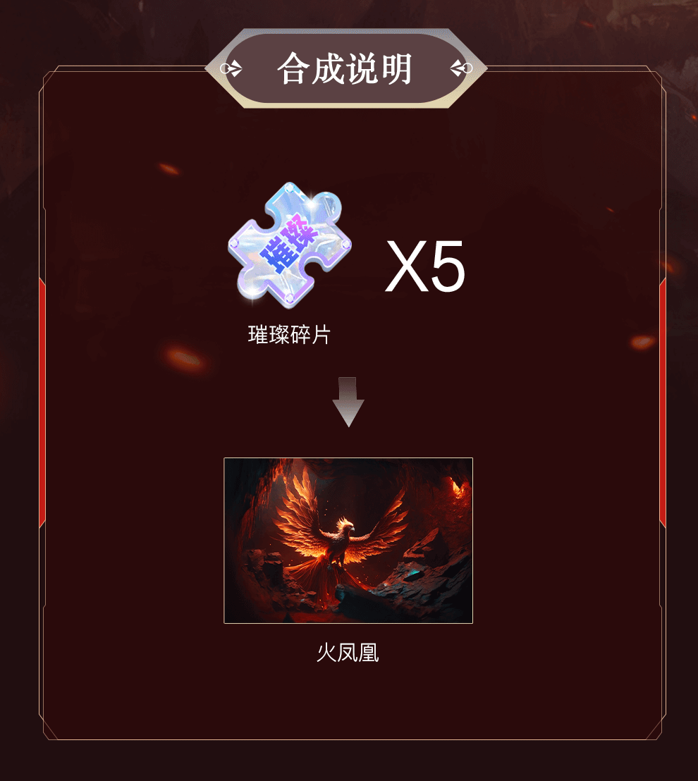 - 5份璀璨碎片,可在彩虹市集内合成1份「火凤凰」(限量50份);