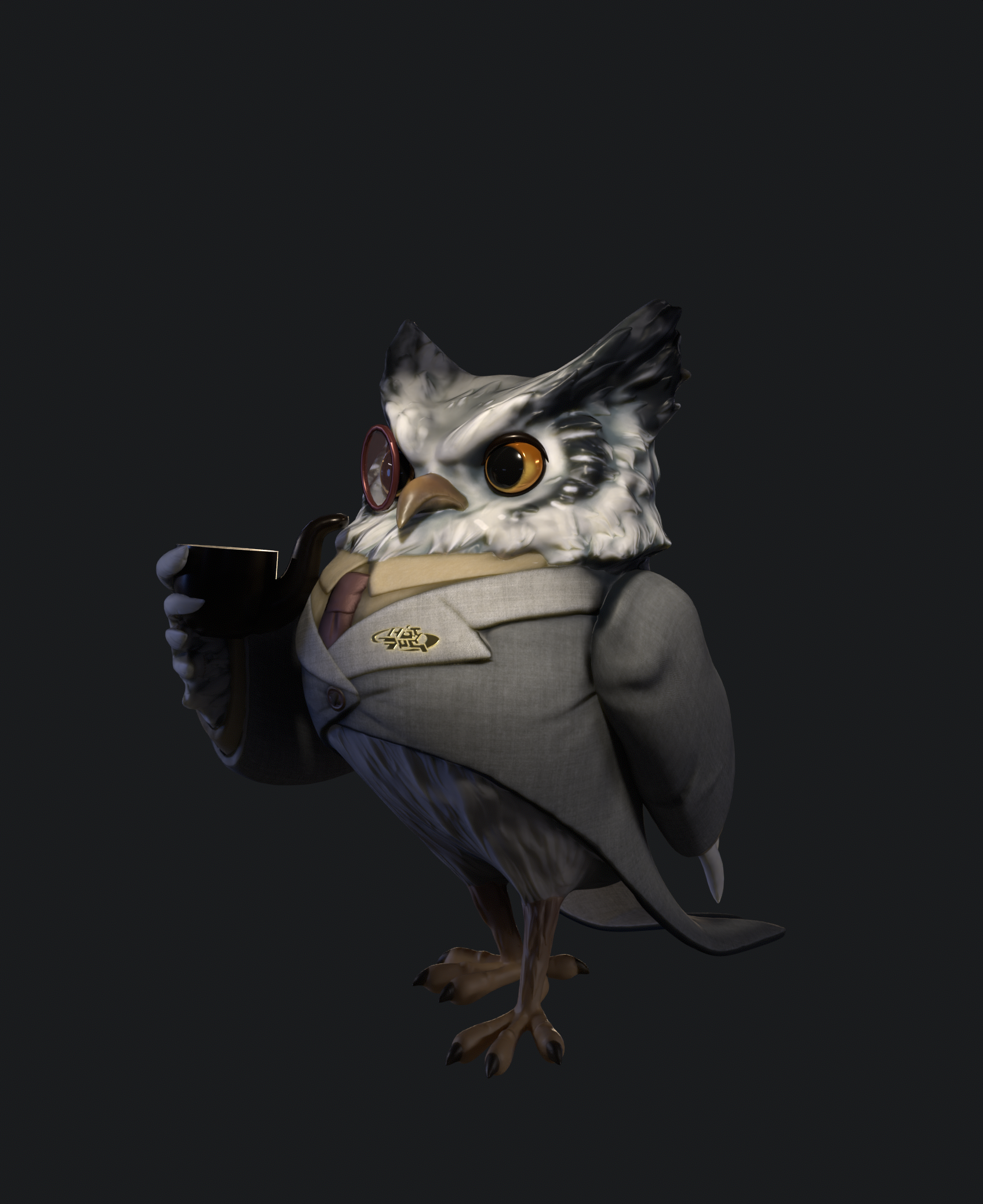 奇妙世界中的 “魔法管理者”——猫头鹰教授,也同时是一位传道受业的师者。它有着敏锐的观察力和杰出的记忆力,羽毛呈白灰色,眼睛则是深邃的灰褐色。在多年的教育事业中,它以一己之力培养出了许多在元宇宙中声名显赫的魔法使与理论学者。而这些日后的精英们自然也将其的教会铭记于心,那便是忠于正义的原则。