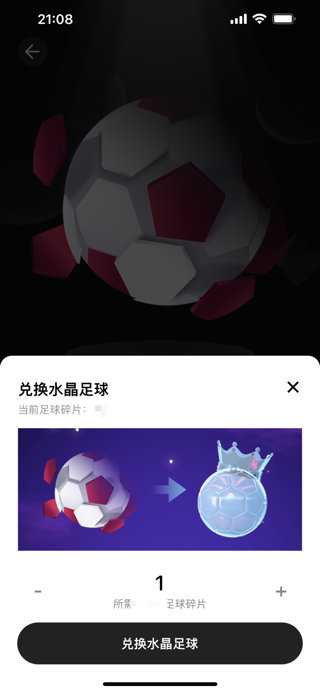 - 每持有8个「足球碎片」的玩家即能兑换1个「水晶足球」,玩家可多次兑换。