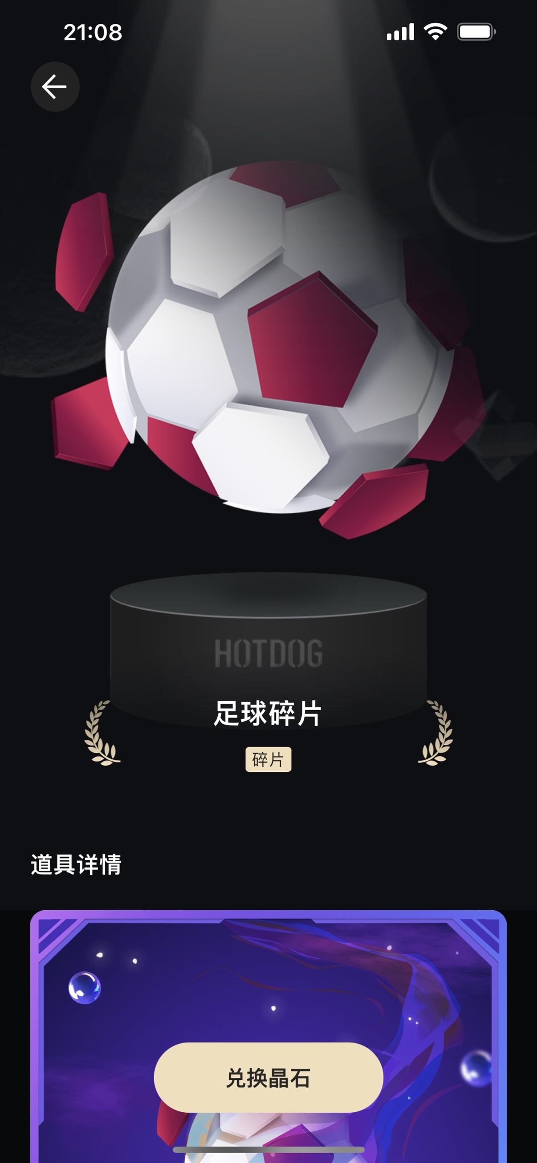 2)点击「足球碎片」道具,进入页面点击“兑换晶石”即可兑换。