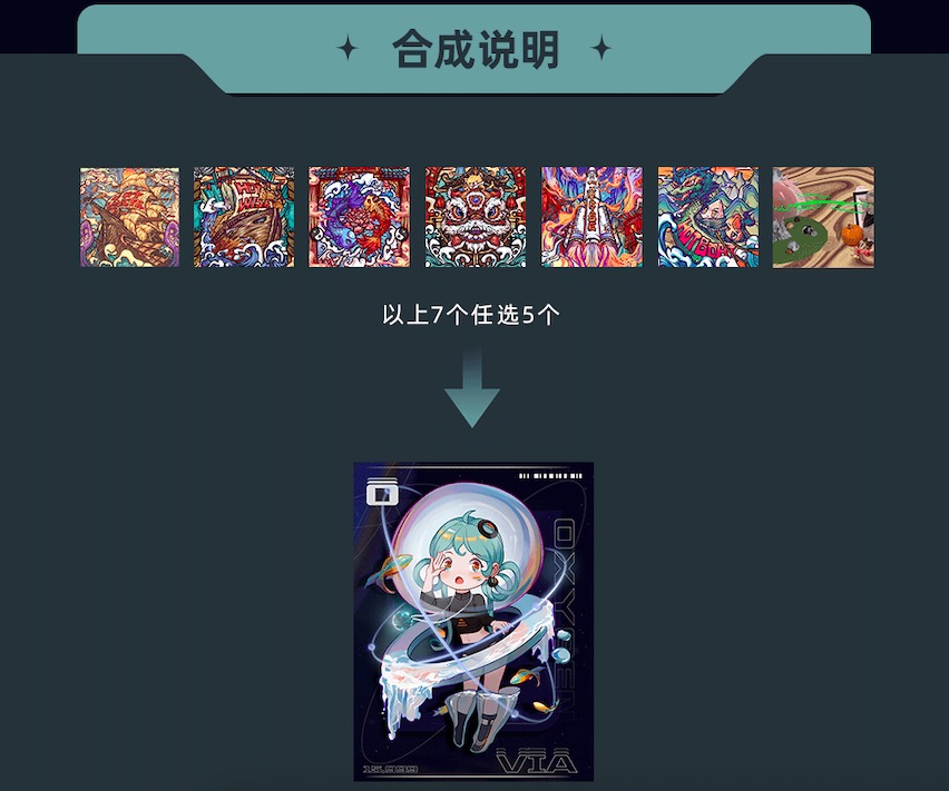 请确保藏品均处于未在流转中心中寄售的状态,才可在合成活动中使用,合成功能不支持多份批量合成。