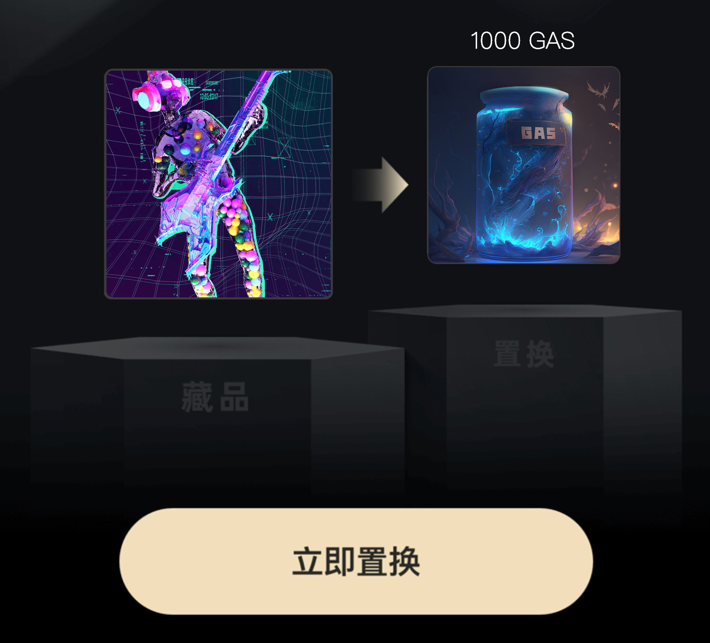 3.添加藏品后选择"立即置换",确认置换并输入交易密码后可将藏品置换为GAS;