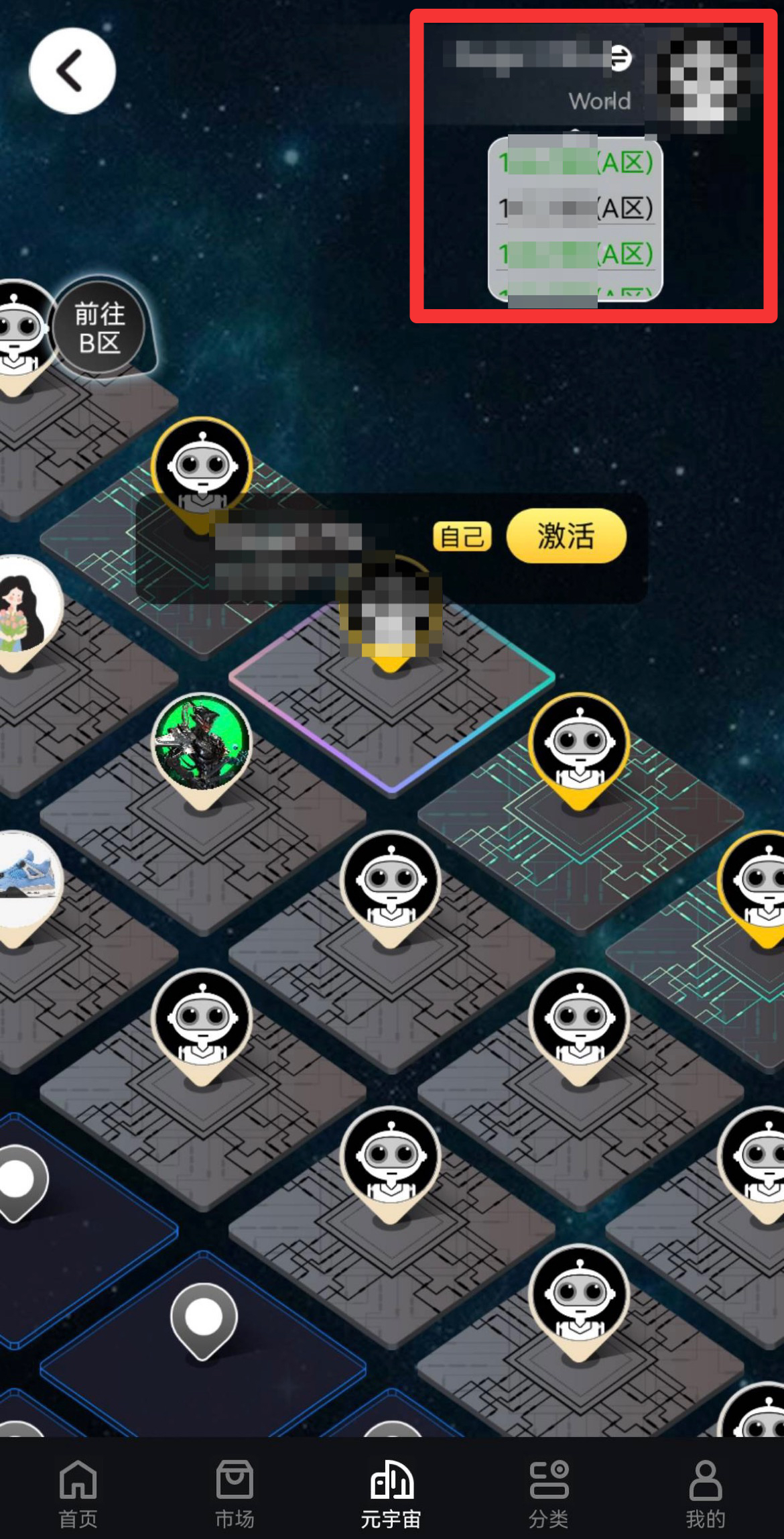 4.点击右上角自己的头像即可查看所拥有的土地列表,点击相应坐标便可来到对应土地进行后续操作。