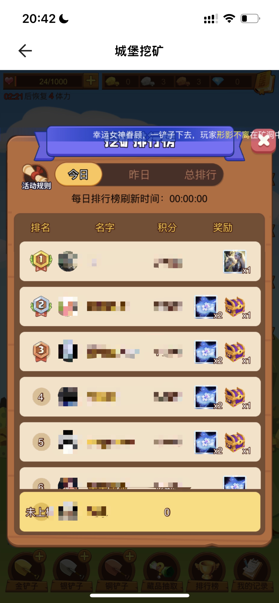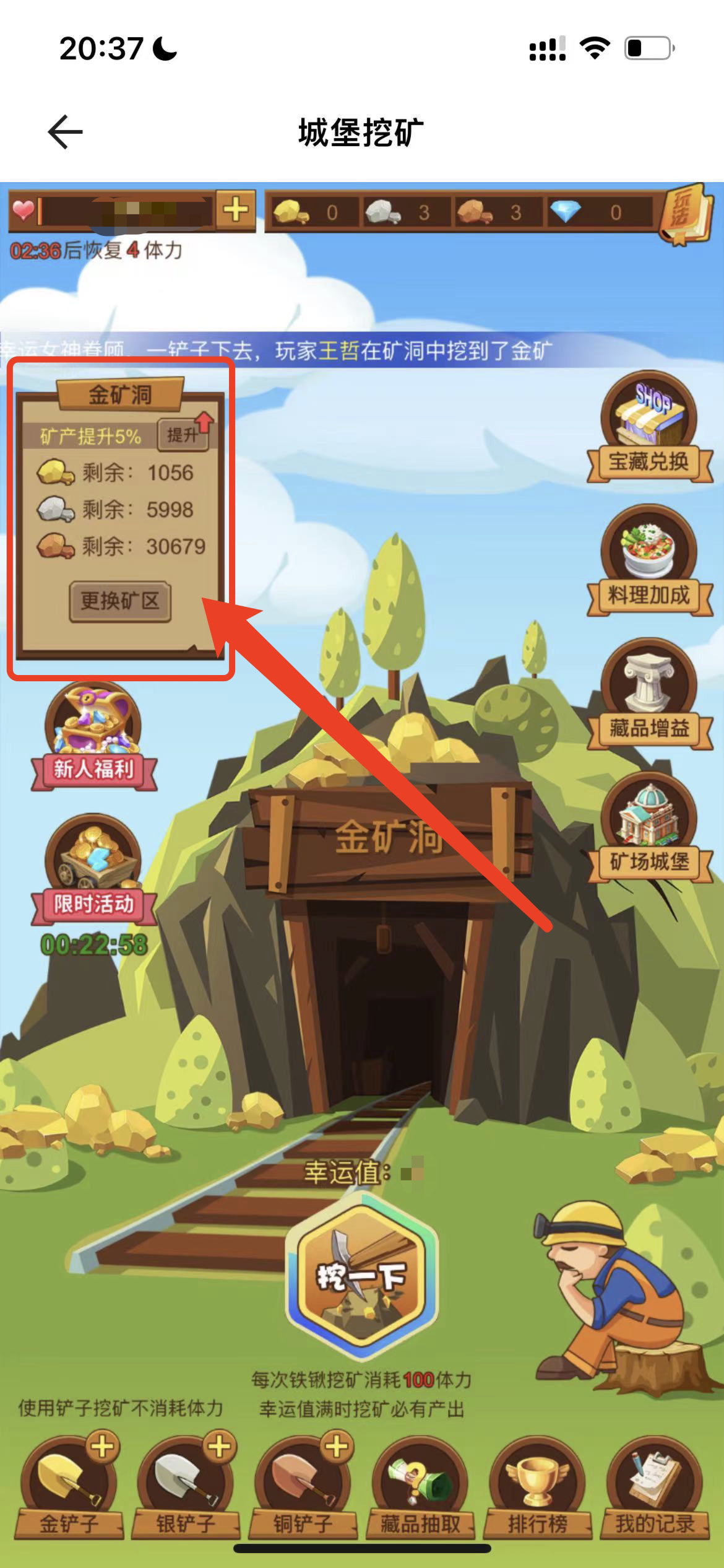 A:图中矿洞剩余显示数字代表每日各个矿洞剩余的总矿量,该数据将会每日更新。