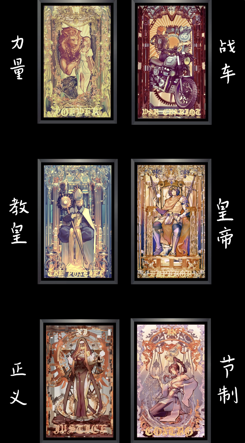 星星的故事尚未完结,而塔罗牌的第二篇章终于也在艺术季后迎来了正式起航!皇帝、教皇、战车、力量、正义、节制,六张制作依旧精良的卡牌不仅丰富了玩家们的收藏,更传导着塔罗牌预言的人生哲理。